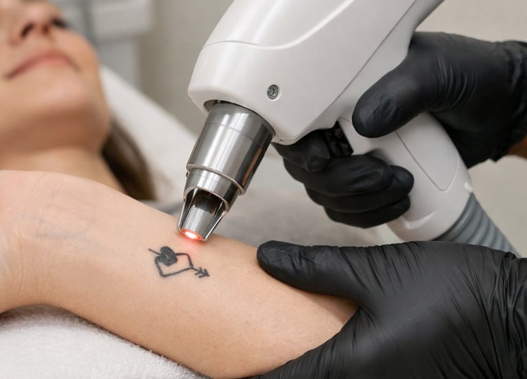 Tratamentos com tecnologia laser para remoção segura de tatuagens e correção de micropigmentação.