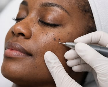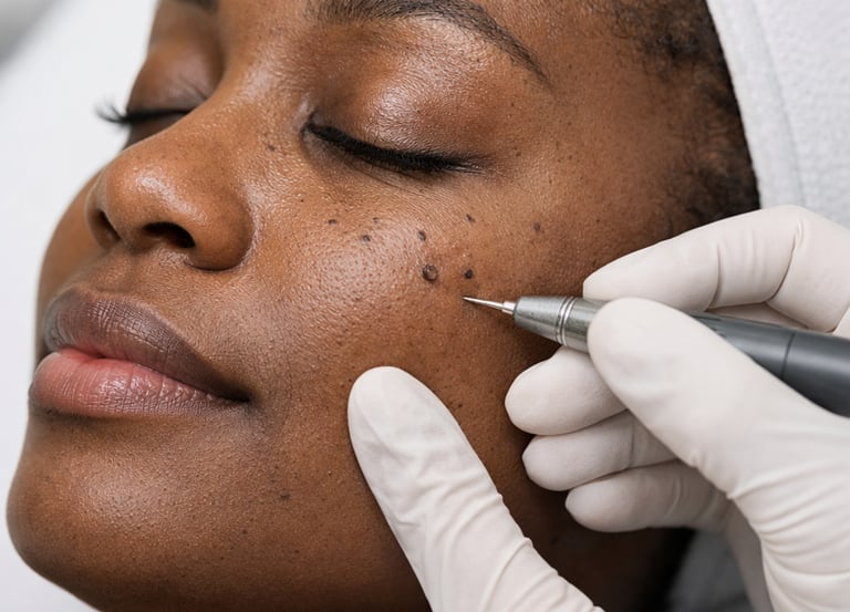 Tratamento para eliminar Dermatoses Papulosas Nigricantes — pequenas elevações escuras que surgem principalmente no rosto e pescoço.