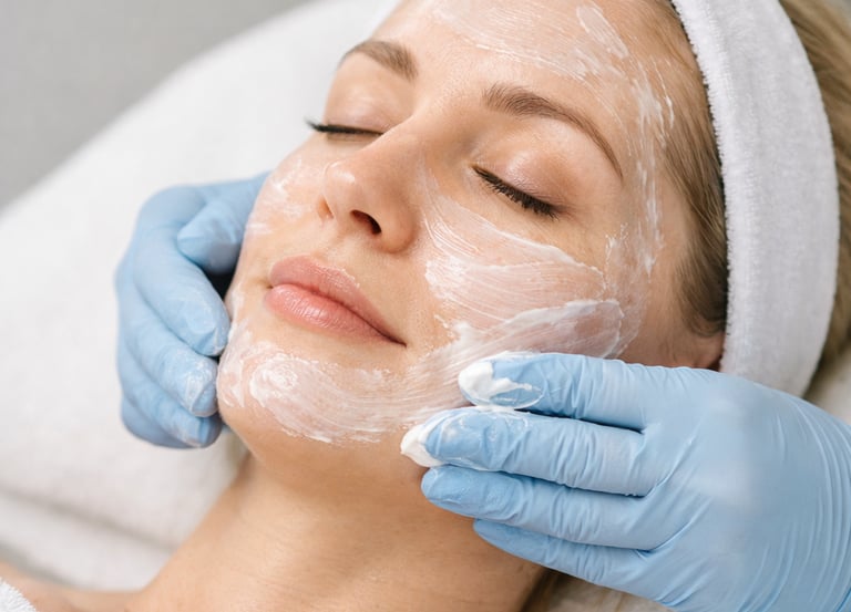 Aplicação de ácidos específicos que promovem a renovação celular.